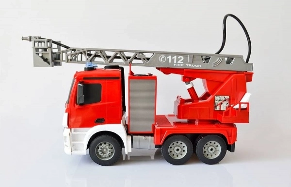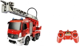 Veliko licencirano daljinski upravljano vatrogasno vozilo u mjerilu 1:20 oduševit će male i velike ljubitelje spasilačkih akcija. Nudi realističnu LED rasvjetu, funkcionalnu vodenu pumpu sa spremnikom za vodu, rotirajuću izvlačnu platformu/ljestve i gumene kotače s pogonom 4x4. Ergonomski 2,4 GHz upravljač s joystickovima osigurava glatko upravljanje, uključujući trubu, sirene i startnu tipku.