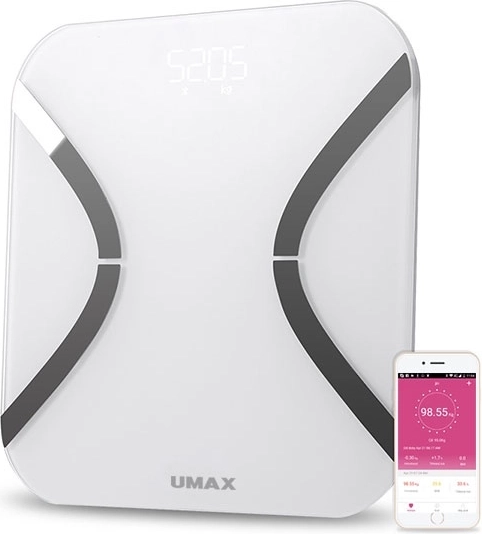 UMAX Smart Scale je moderna pametna vaga s čistim dizajnom i izdržljivom površinom koja će vam pomoći dugoročno pratiti vašu težinu i ključne metrike sastava tijela. Zahvaljujući bioelektričnoj impedancijskoj analizi (BIA) pruža detaljne informacije o vašem tijelu te pomaže bolje planirati trening, prehranu i regeneraciju.