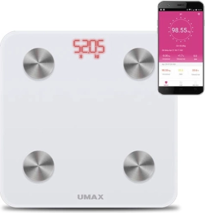 UMAX Smart Scale US20M elegantna je i pouzdana pametna vaga za svakodnevnu kontrolu zdravlja. Pomoću bioelektrične impedancijske analize (BIA) pruža precizne podatke o vašem tijelu, a zahvaljujući bežičnom prijenosu u preglednu aplikaciju na hrvatskom dobivate trenutačan pristup rezultatima i njihovoj povijesti.