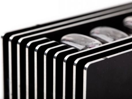 Satovi iz koncepta NOYCE JOYCE zamjenjuju klasične sklopke modernim elektroničkim kompletom od PCB-a, gdje pojedini dijelovi stvaraju čist, tehnički i dizajnerski izgled. Zahvaljujući jasnom prikazu i ugodnoj boji svjetla, uklapa se u spavaću sobu, radnu sobu i dnevni boravak.