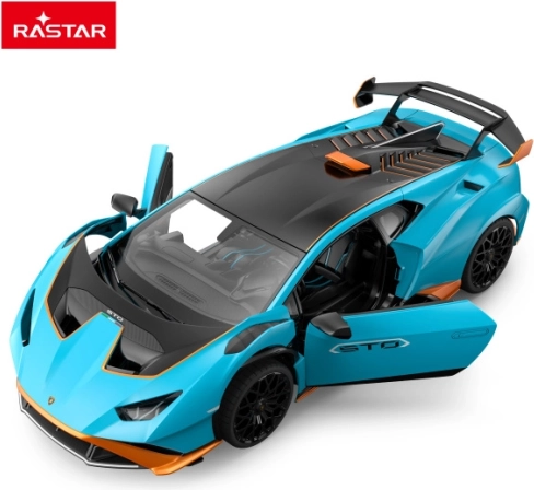 Licencirani RC model Lamborghini Huracán STO brenda RASTAR izrađen je od kvalitetne ABS plastike i opremljen vrhunskim mehaničkim i elektroničkim komponentama. Vjerno reproducira proporcije i interijerne detalje pravog supersportaša, nudi brzu i preciznu vožnju s naglaskom na stabilnost i osjetljivo upravljanje.