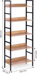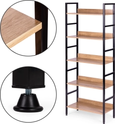 Police su izrađene od MDF ploče presvučene furnirom koji imitira drvo. Njihove dimenzije 56 x 25,5 cm udobno će smjestiti sve vaše omiljene predmete. Okvir knjižnice izrađen je od prašno lakiranog metala, a noge su opremljene posebnim nožicama za zaštitu poda.