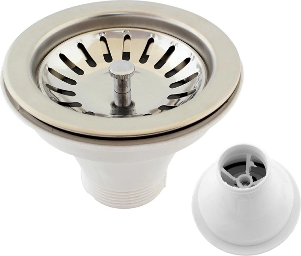 Čvrst metalni čep za sudoper, kompletan s potrebnim priborom za ugradnju. Zahvaljujući standardnim dimenzijama lako ga postavite u kuhinjski sudoper.