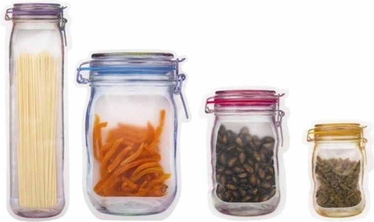 Set od 20 vrećica s vezicom za sigurno pohranjivanje hrane. Originalan oblik s printom staklenki. Komplet sadrži do 4 različite veličine za pakiranje manjih i većih porcija.