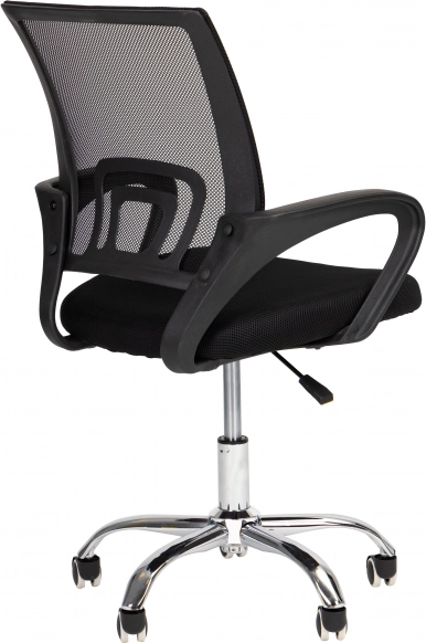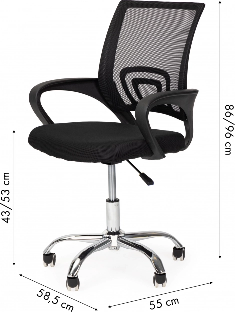 Stolica je opremljena jednostavnim mehanizmima za potpunu prilagodbu, što je čini jednostavnom za korištenje. Izdržljiva mrežica na naslonu osigurava dobru ventilaciju, dok metalna, kromirana baza s pet kotača pruža stabilnost i mobilnost.