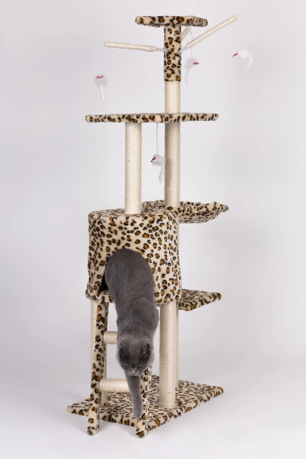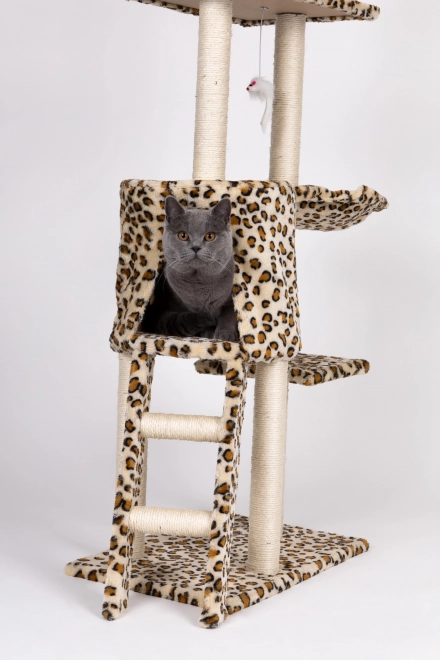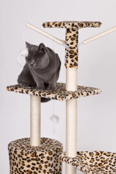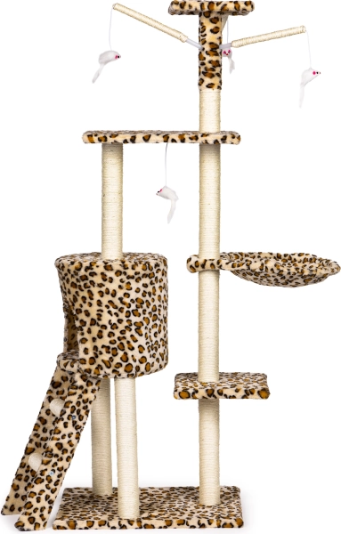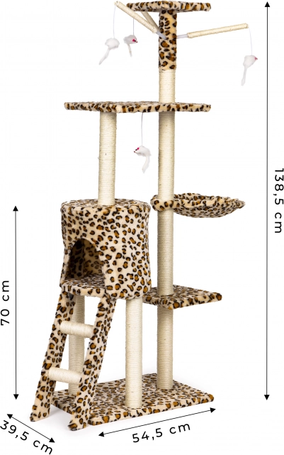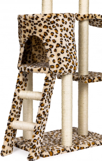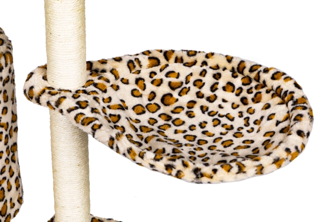 Stvorite svojoj mački sigurno utočište za odmor, grebanje i igru. Ova visoka grebalica s leopard uzorkom stoji na čvrstoj MDF bazi i opremljena je stupovima omotanim sisalom, koji potiču prirodni instinkt grebanja i istovremeno čuvaju vaš namještaj. Ne nedostaje ni najviši vidikovac s kojeg mačka ima pregled nad cijelim prostorom.