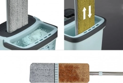 Pogodan za čišćenje pločica, mramora, keramike, drva i drugih materijala, ovaj mop omogućuje lako ispiranje, cijeđenje i pranje u jednom koraku.