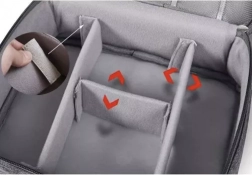 Glavni dio organizatora sadrži podesive i odvojene pregrade za razne vrste kablova, punjača i drugog pribora. Pregrade s mrežicom i gumicama osiguravaju da sve ostane na svom mjestu. S ručkom za lako nošenje, idealan je pratitelj na putovanjima, u uredu ili na sastancima.
