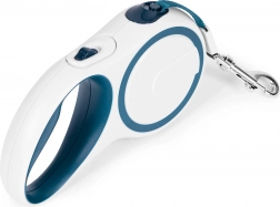 Dizajn u bijelo-plavoj kombinaciji djeluje čisto i moderno te se lako održava. Povodac je odličan izbor za svakodnevne šetnje gradom i parkom.