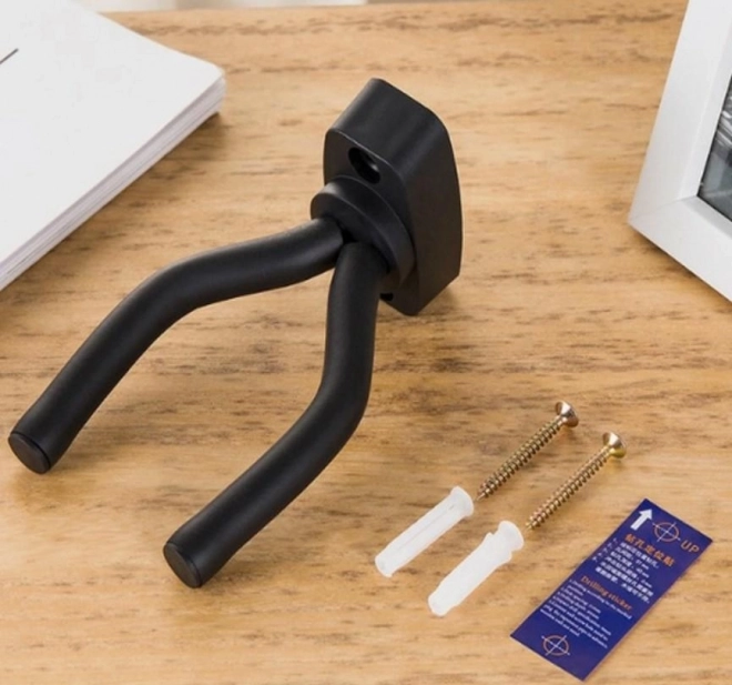 Vješalica zauzima vrlo malo prostora, a njezin zakrivljeni prednji dio smanjuje rizik od ispadanja gitare pri slučajnom udarcu. Meki prihvati nježni su prema laku i sprječavaju bilo kakve otiske. Proizvod uključuje montažne dijelove, što olakšava instalaciju.