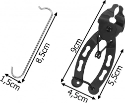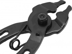 Ove univerzalne klešte dizajnirane su za lako otvaranje i zatvaranje brzih spojki na lancima bicikala. Zahvaljujući preciznoj mehanici i opruzi, održavanje lanca obavit ćete brzo, sigurno i bez nepotrebnog napora. Dio kompleta je i praktična kuka za lanac, koja drži lanac napetim tijekom čišćenja, podmazivanja ili zamjene.