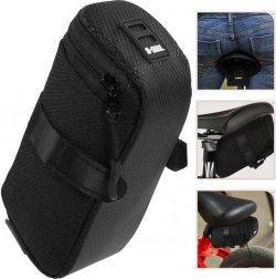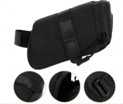 Torbica se pričvršćuje na sjedalo i cijev sjedala pomoću čičak trake, što osigurava stabilnost i eliminira neželjena kretanja tijekom vožnje.