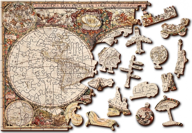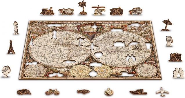 Drvene puzzle s motivom antičke karte oduševit će ljubitelje originalnih slagalica i kolekcionare netradicionalnih poklona. Zahvaljujući obostranom izvedbom 2u1 možete slagati prema slici na licu ili iskušati složiti naličje s ponavljajućim uzorkom isključivo prema oblicima dijelova.