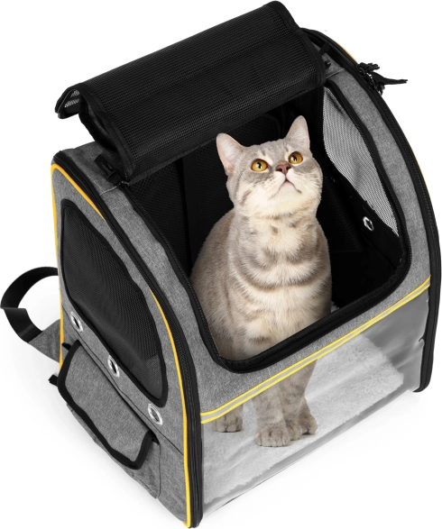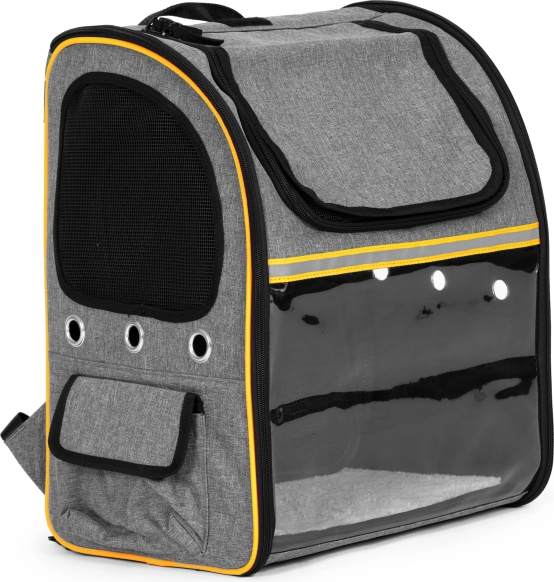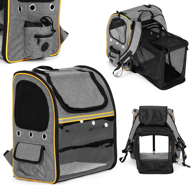 Transparentno “staklo” umiruje životinju pogledom prema van, dok mrežasti paneli i ventilacijski otvori osiguravaju stalan dotok zraka i udobnost na putu.