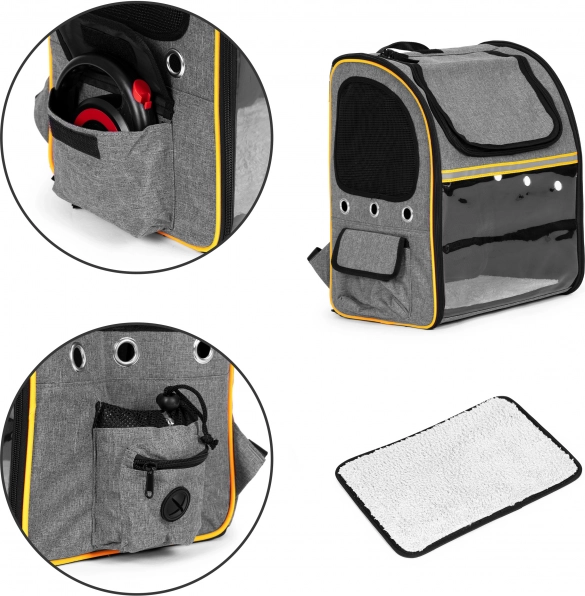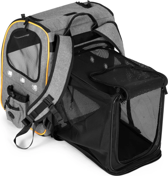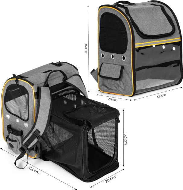 Uživajte u putovanju sa svojim ljubimcem sigurno i udobno. Ovaj prostrani ruksak kombinira čvrstu i sigurnu konstrukciju s promišljenim detaljima za vašu udobnost i komfor životinje. Prozirna prednja stijenka omogućuje vašem pratitelju promatranje okoline, dok mrežasti paneli i ventilacijski otvori osiguravaju stalan dotok svježeg zraka.