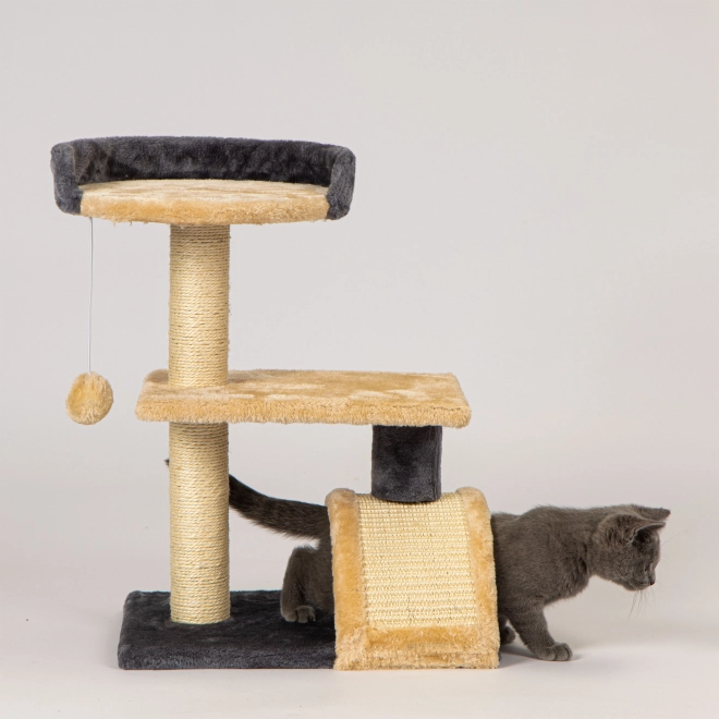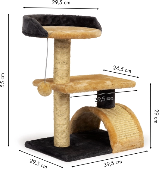 Svaki stup obložen je prirodnim sisalom, idealnim za nokte vaše mačke. Mekani pliš na platformama jamči udobnost i sigurnost.