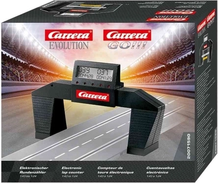 Elektronički brojač krugova za CARRERA GO i EVOLUTION. Preciznost 1/100 s, do 999 krugova, utrka na vrijeme i krugove, proširenje na više staza, zvučni start.