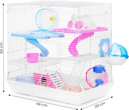 Promišljeni kavez PETSI stvara idealno okruženje za hrčke, štakore i druge male glodavce. Više razina s povezanim spustovima potiče prirodno kretanje i istraživanje, dok kućica pruža mirno utočište za odmor. Zahvaljujući kvalitetnim materijalima, kavez je izdržljiv, stabilan i ujedno siguran za životinje.
