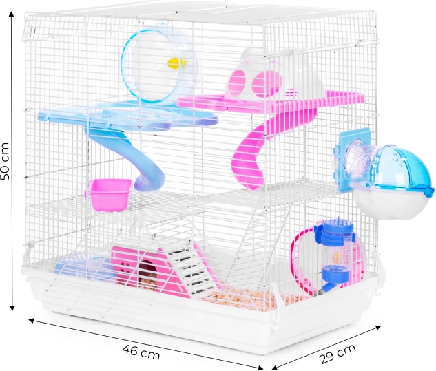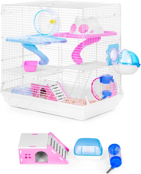 U kompletu su kućica, zdjelica, pojilica, dva spusta, četiri razine i kotač za trčanje – sve što je vašem ljubimcu potrebno za udobnost, aktivnost i odmor.