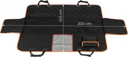Navlaka PETSI pokriva cijelu stražnju klupu i stražnje dijelove prednjih sjedala, štiti od vlage, blata i dlake. Zahvaljujući izdržljivoj prošivenoj konstrukciji udobna je za ljubimca i nježna prema interijeru vozila.