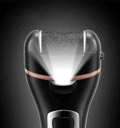 Pregledan zaslon i tipke olakšavaju upravljanje. Prebacujte između niske brzine za održavanje i visoke za tvrdu kožu. Integrirano LED svjetlo precizira tretman.