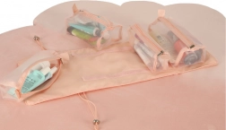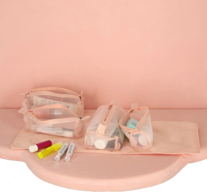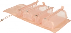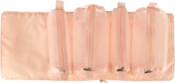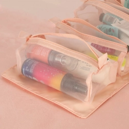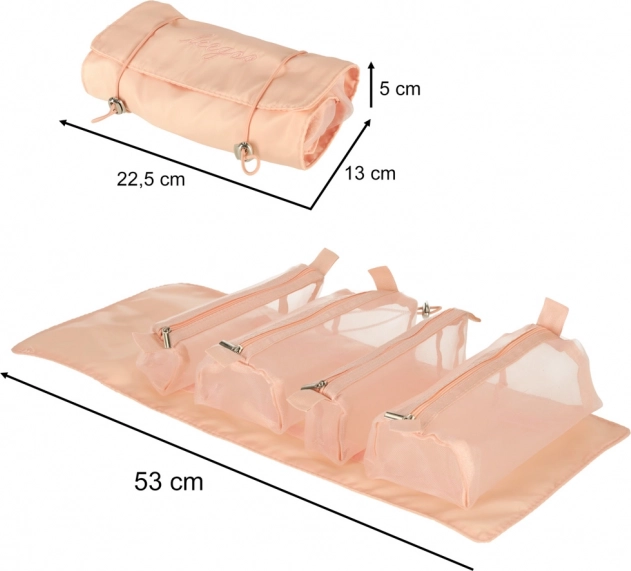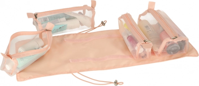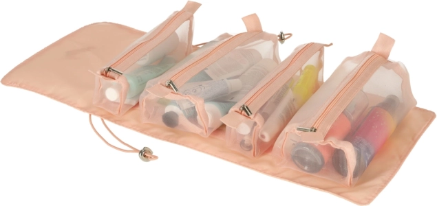 Ova ružičasta kozmetička torba dizajnirana je za one koji traže udobnost i učinkovitost pri organiziranju svojih kozmetičkih proizvoda na putu. Torba je opremljena s četiri prozirna pretinca s patentnim zatvaračem, koja omogućuju lak pristup i vidljivost sadržaja. Pretinci su u potpunosti odvojivi, što donosi veliku fleksibilnost upotrebe.