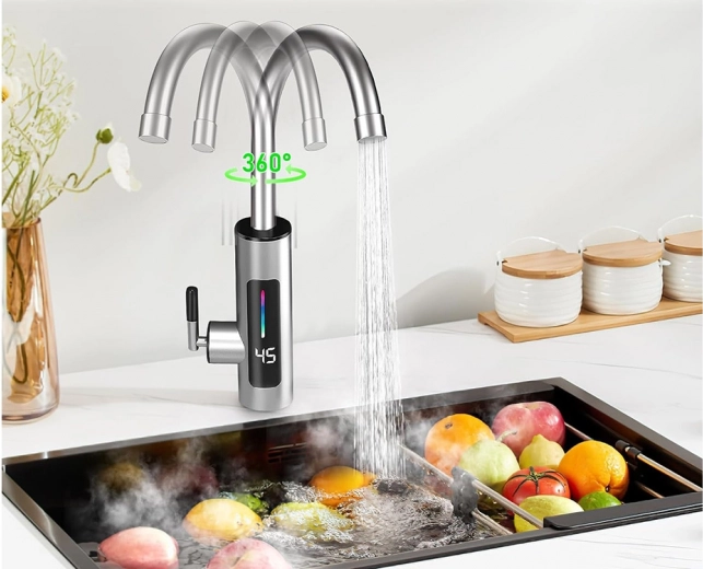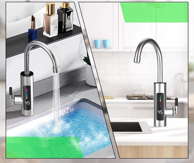 Električni protočni grijač vode s LCD-om idealno je rješenje za trenutno zagrijavanje vode izravno iz slavine. Zahvaljujući modernom dizajnu, dodaje eleganciju i stil vašoj kuhinji.