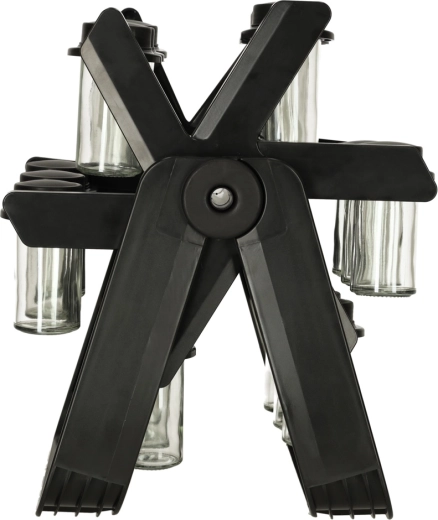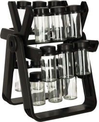 Sadrži 18 staklenih posuda koje održavaju začine svježima i lako dostupnima.