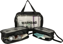 Predstavljamo vam set od tri kozmetičke torbice koje su nezaobilazan dodatak svakom putniku. Svaka od ovih torbica izrađena je od visokokvalitetnog vodootpornog materijala, što osigurava zaštitu vaših kozmetičkih proizvoda i cijele prtljage. Dizajnirane su u različitim veličinama, što vam omogućuje organizaciju svih vaših omiljenih proizvoda, bilo da krećete na kratko ili dugo putovanje.