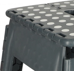 Ova sklopiva stolica idealan je pomagač u kuhinji, kupaonici, radionici i dječjoj sobi. Robusna plastika i protuklizna obrada gornje površine osiguravaju siguran korak i ugodnu upotrebu. Nakon sklapanja stolica ima kompaktne dimenzije pa je lako spremiti u ormar ili iza vrata.