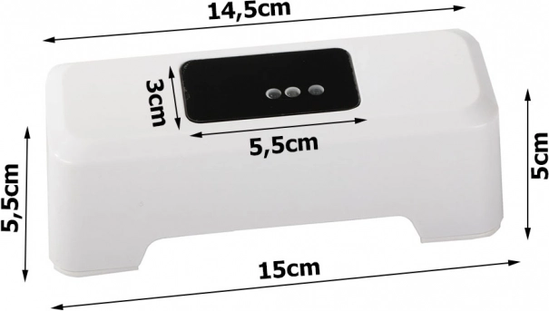 - Visina: 5 cm, Dubina: 5,5 cm, Širina baze: 15 cm