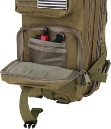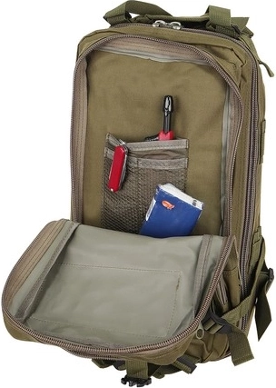 Ovaj ruksak s volumenom od 26 litara izrađen je od visokokvalitetnog, vodootpornog materijala otpornog na kidanje. Opremljen je s pet komora, uključujući glavni džep s produženim patentnim zatvaračem za lak pristup, unutrašnje manje džepove i mrežaste pregrade.