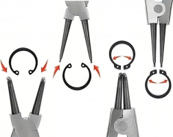 Dva para za unutarnje i dva para za vanjske osiguračne prstenove (Seeger) pokrivaju većinu servisnih zahvata u automobilskoj i strojarskoj praksi.