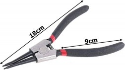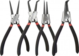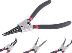 Kompletan set kliješta za osiguračne (Seeger) prstenove za brzu i sigurnu manipulaciju s unutarnjim i vanjskim prstenovima. Kvalitetno čelično tijelo i udobni protuklizni rukohvati povećavaju sigurnost držanja, dok ravni i zakrivljeni vrhovi olakšavaju rad u teško dostupnim mjestima. Idealno za auto/moto radionice, industriju i kućne radionice.
