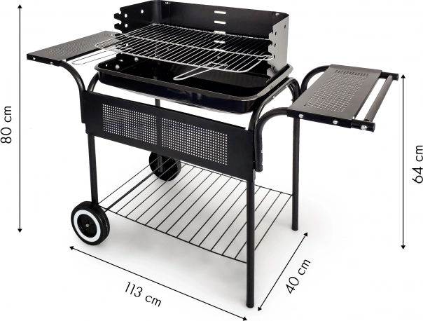 Roštilj je opremljen kotačima koji olakšavaju njegovo premještanje na razna mjesta u vrtu, na terasi ili u dvorištu. Podesiva rešetka u 5 različitih razina osigurava da vaša jela budu pečena točno prema vašim željama.