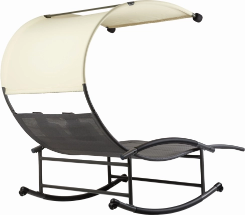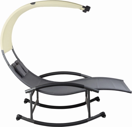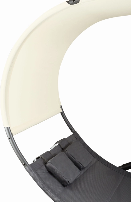 Ležaljka duguje svoju stabilnost i sigurnost pravilno profiliranom okviru i klizačima koji omogućuju blago ljuljanje. Velika nadstrešnica pružit će nam ugodnu sjenu u vrućim danima i zaštititi od UV zračenja, a blago ljuljanje uljepšat će trenutke provedene na otvorenom s našim najmilijima. Kvalitetan materijal od kojeg je izrađena površina ležaljke „diše” i propušta vodu, zahvaljujući čemu je otporna na vremenske uvjete.