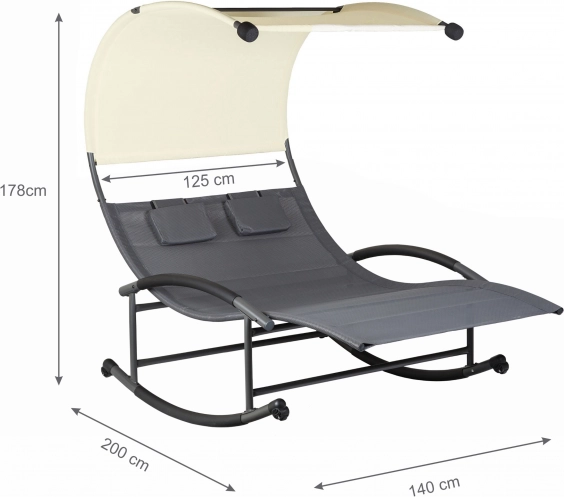 Svatko će cijeniti malo luksuza i udobnosti u kombinaciji s opuštanjem na svježem zraku. Dvosjed ležaljka s nadstrešnicom je moderna verzija tradicionalne ležaljke. Spaja moderan izgled i veliku udobnost zahvaljujući pravilno velikoj, profiliranoj površini za ležanje.