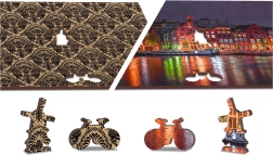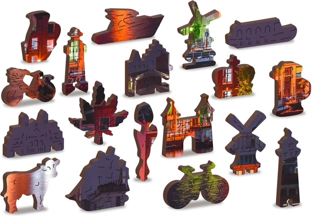 Ova jedinstvena drvena slagalica oduševit će svakog ljubitelja slaganja. Zahvaljujući laserskom rezanju nudi slagalica glatke rubove, koji se lako spajaju. Sadrži ukupno 150 dijelova, od čega 30 dijelova ima jedinstvene oblike poput životinja ili poznatih građevina, dodajući edukacijski element i istovremeno vizualnu estetiku. Slagalica je dizajnirana kao 2u1, što znači da ju možete slagati kako prema rafiniranom noćnom motivu Amsterdama, tako i prema obliku dijela uzorka na stražnjoj strani.