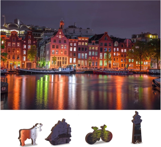 Svaki dio je dio cjeline, ali ima i svoj vlastiti jedinstveni oblik koji predstavlja gradske građevine, životinje ili predmete. Istovremeno je sastavljanje teže, što doprinosi većoj zabavi i izazovu. Puzzle također krasi šarmantna scena Amsterdama noću, koja je savršeno urezana u svaki dio.