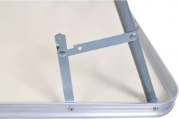 Kombinacija MDF ploče i metalne konstrukcije (aluminij, željezo) osigurava stabilnost i otpornost na uobičajeno trošenje. Stol je odličan za kampiranje, piknike, roštiljanje ili kao privremena radna površina na balkonu ili u vrtu.