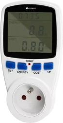 Sigurnost osigurava alarm preopterećenja s podesivim pragom maksimalne snage. Upravljanje je brzo i intuitivno zahvaljujući samo četiri tipke (SET, ENERGY, COST, UP). Dovoljno je priključiti u utičnicu, spojiti uređaj i odmah imate jasan uvid u stvarne troškove njegova rada.