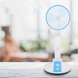 Održavajte ugodnu klimu bilo gdje. Ovaj sklopivi bežični ventilator u elegantnoj plavoj boji spaja učinkovito, ali tiho hlađenje s korisnim LED svjetlom. Uz kontinuiranu regulaciju brzine lako prilagođavate protok zraka trenutačnim potrebama – od blagoga povjetarca do intenzivnijeg osvježenja.