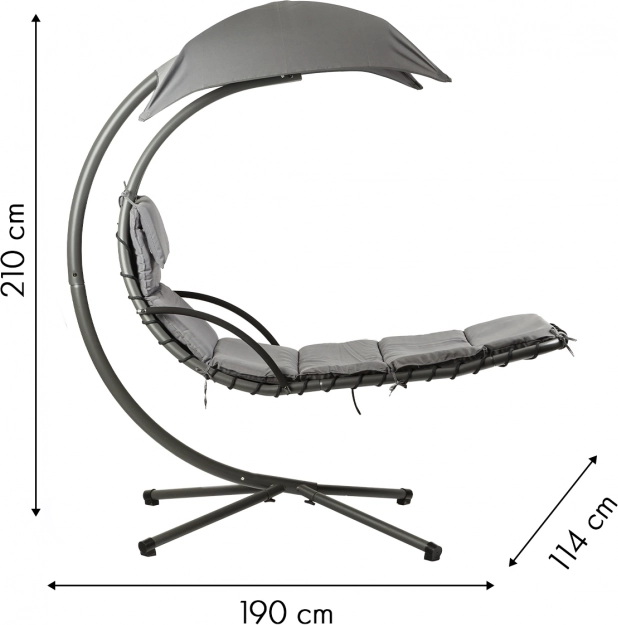 Viseća ležaljka svoju stabilnost i sigurnost duguje ispravno profiliranom okviru, koji omogućuje ljuljanje i njihanje na ležaljci. Veliki podesivi krov pružit će ugodnu sjenu u vrućim danima, a lagano njihanje uljepšat će vam boravak na otvorenom. Udoban odmor osigurat će vodootporan, mekani madrac s naslonom za glavu.