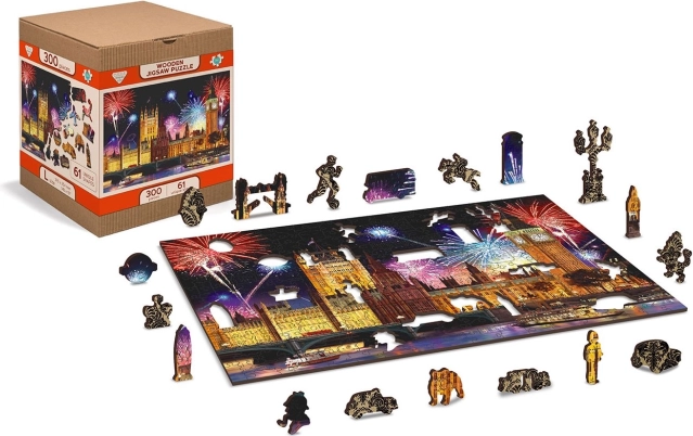 Naše drvene puzzle 'London noću s vatrometom' nisu samo zabavne, već i edukativne i dekorativne. Precizna obrada osigurava dugotrajnost i mogućnost ponovnog sastavljanja.