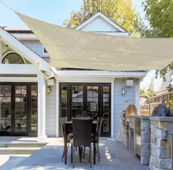 Montaža je jednostavna – u kutevima se nalaze nehrđajući D-prstenovi za sigurno učvršćivanje, a u pakiranju su i praktična užad. Platno možete zategnuti pod različitim kutovima prema položaju sunca i vašim potrebama. Svestrana uporaba uz kuću, na vikendici i pri kampiranju.