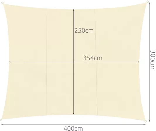 Pravokutno sjenilo 4 × 3 m u elegantnoj bež boji pruža pouzdano sjenčenje i zaštitu od UV zračenja. Zahvaljujući vodootpornoj tkanini gramature 180 g/m² brzo se suši, otporno je na vlagu i plijesan te istodobno omogućuje cirkulaciju zraka. Idealno za vrt, terasu, balkon i kampiranje – s čvrstim nehrđajućim D-prstenovima i užadima za jednostavnu montažu.