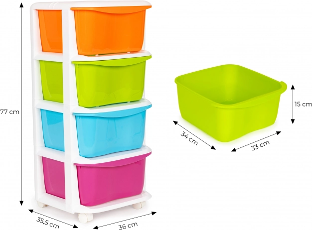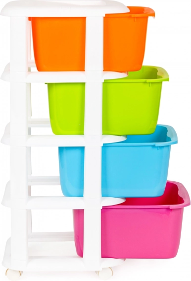 Organizator na kotačićima nudi funkcionalno i praktično rješenje za jednostavno organiziranje stvari. Posebno je pogodan za dječje sobe ili kupaonice.