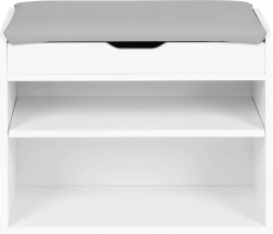 Ovaj ormarić za cipele ima udobnu klupu od eko kože koja nudi ugodno sjedenje pri obuvanju. Osim toga, sadrži i prostor za pohranu, idealan za držanje obuće ili manjih predmeta.