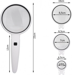 Ova višenamjenska lupa kombinira snažno povećanje s udobnošću korištenja. Zahvaljujući dvjema ugrađenim LED diodama pruža ravnomjerno osvjetljenje promatranog objekta, pa je izvrsna za pregled novčića, maraka, nakita i za čitanje sitnog teksta. Izmjenjive leće lako ćete prilagoditi konkretnoj aktivnosti.