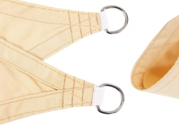Uživajte u ugodnoj hladovini bez užarenog sunca. Trokutasta vrtna plachta od izdržljivog poliestera učinkovito blokira UV zračenje, snižava temperaturu ispod plahte i zahvaljujući vodoodbojnoj površini bolje podnosi pljuskove. Ojačani šavovi, čvrsti metalni prstenovi u kutovima i prošiveni rubovi osiguravaju dugotrajnost i stabilnost.
